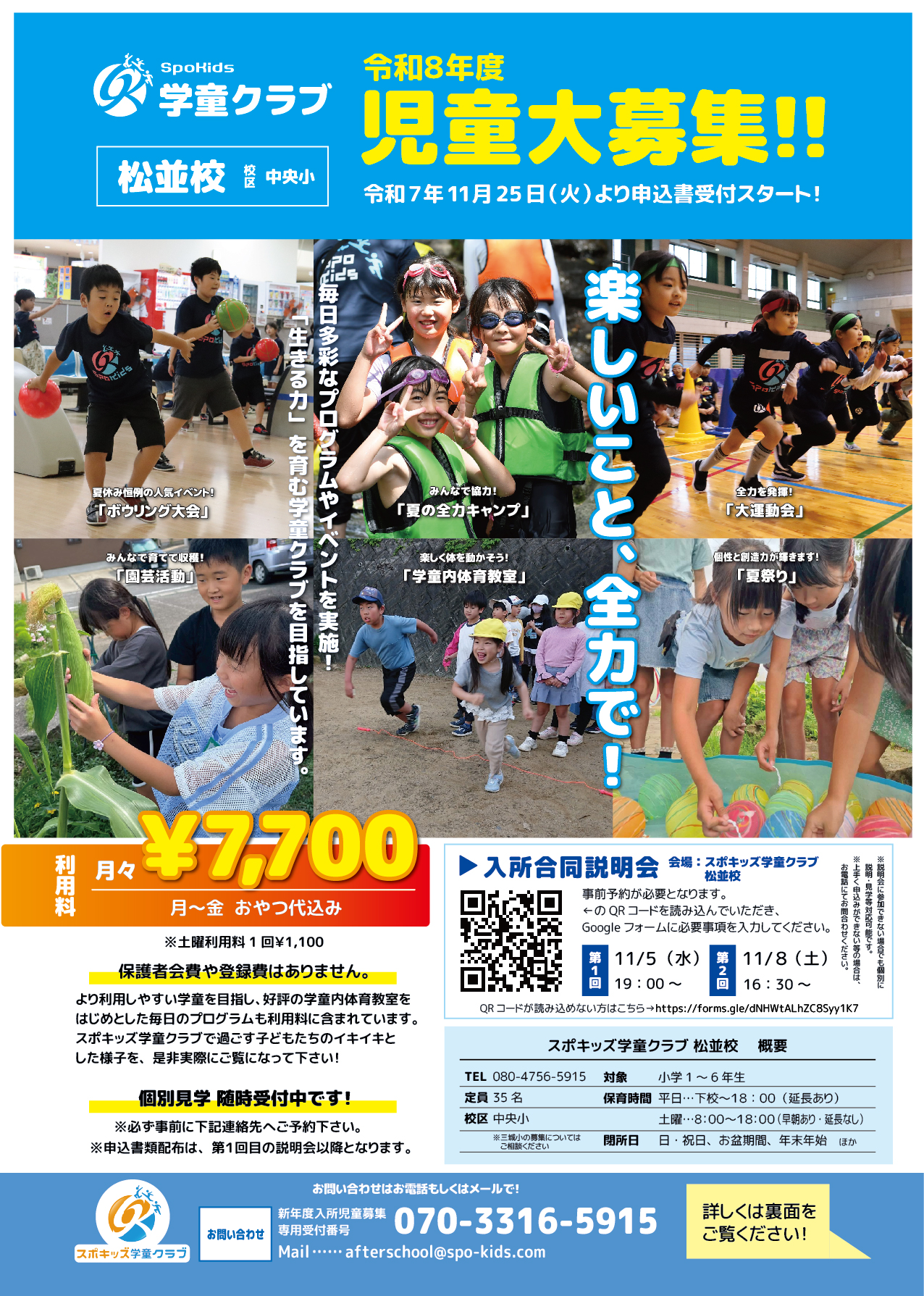 令和8年度の募集について、11月25日(火)より申込み受付をスタート致します!
